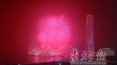火樹銀花,流光溢彩,16萬發(fā)禮花綻放濠江之畔。