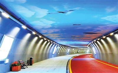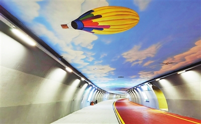 一路走下來,慢行隧道中的景致令人目不暇接,不管是隧道頂部繪制的藍(lán)天白云、七彩飛鳥等圖案,還是隧道兩旁不斷動態(tài)展示的戶外宣傳屏,都讓人不自覺放慢腳步,步行千米絲毫不覺得審美疲勞。記者留意到,慢行隧道設(shè)置有多個緊急出口、安全出口等標(biāo)志,讓人安心。